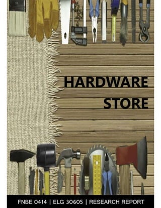 This document provides a research report comparing two hardware businesses in Malaysia: Perniagaan Gluck located in Subang Jaya, and Cemerlang Indah Hardware located in Port Dickson. The report includes descriptions of the businesses, a comparative analysis of their operations, products, customers, and strategies for combating competition. It concludes that Perniagaan Gluck has greater commercial success potential due to its owner's forward-thinking approach and online business development, while Cemerlang Indah Hardware relies more on traditional methods. Recommendations are made for Perniagaan Gluck to determine online business strategies and improve weaknesses.