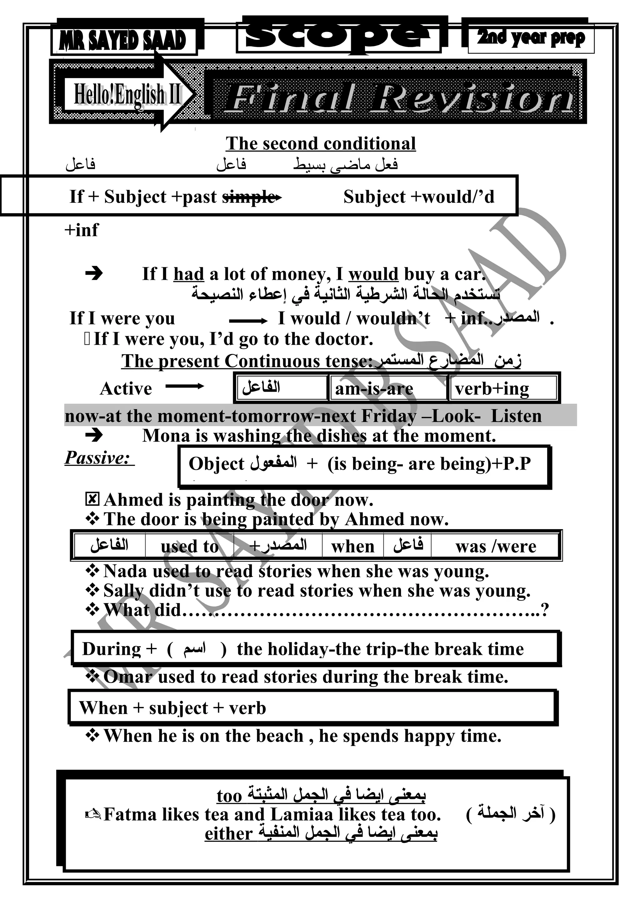 - Questions are also provided to assess understanding of the grammar points covered.
