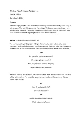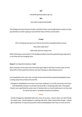 1) A boy and girl who play basketball set up fake dating profiles to meet people as their social lives have been lacking due to their focus on sports. They match and plan a blind date.
