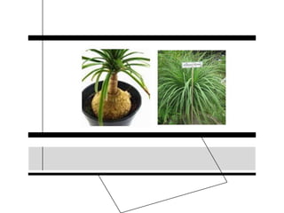 This document contains summaries of 20 plant species presented in 3 sentences or less each. It includes the local and English names, botanical name, family, origin, morphology, cultivation methods and uses for each plant. The plants described are bamboos, ashwagandha, pineapple, grape, aster fern, wood apple, frangipani, Christmas tree, black pepper, rose, litchi, Caribbean pine, eggplant, cinnamon, ponytail palm, neem, bird of paradise, pistachio, hummingbird tree, and medlar.