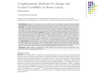 34. Importance? Flatter cortisol slopes have been shown to distinguish metastatic breast cancer and predict mortality in breast cancer patients. There is a need to further examine the effects of specific processes of biofield healing on outcomes for cancer populations.