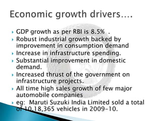 The document provides an overview of the Indian tyre industry. Some key points: