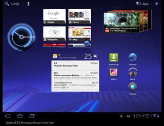 The document discusses emerging topics in mobile design and interaction. It begins by noting that mobile presents an opportunity to invent new ways for users to interact with information. It then outlines three emerging mobile topics: 1) Shapeshifting, where devices and interfaces can change form; 2) A Brave NUI World, where natural user interfaces replace graphical user interfaces; and 3) Comfortable Computing, where mobile devices are used for leisure in addition to tasks. The document explores each topic in more depth and provides implications and challenges for designers. It encourages thinking of content as a design material and focusing on how mobile experiences can unfold for users.