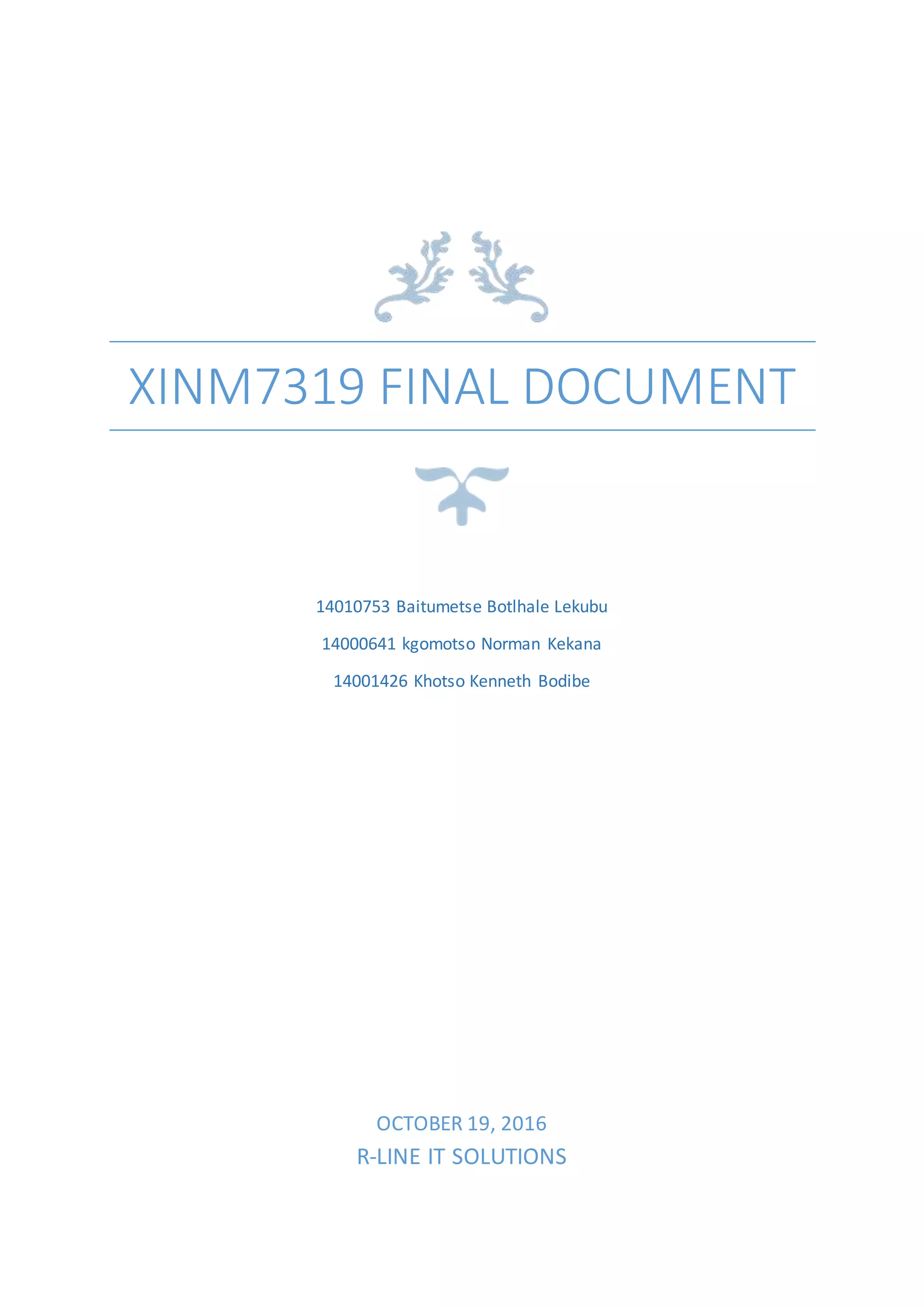 PostNet is a franchise that specializes in printing, marketing, and logistics solutions for small businesses. The document provides an overview of PostNet Brooklyn, including its address, business processes, employees and roles. It also outlines the vision, mission, history and technical capabilities of PostNet Brooklyn.
