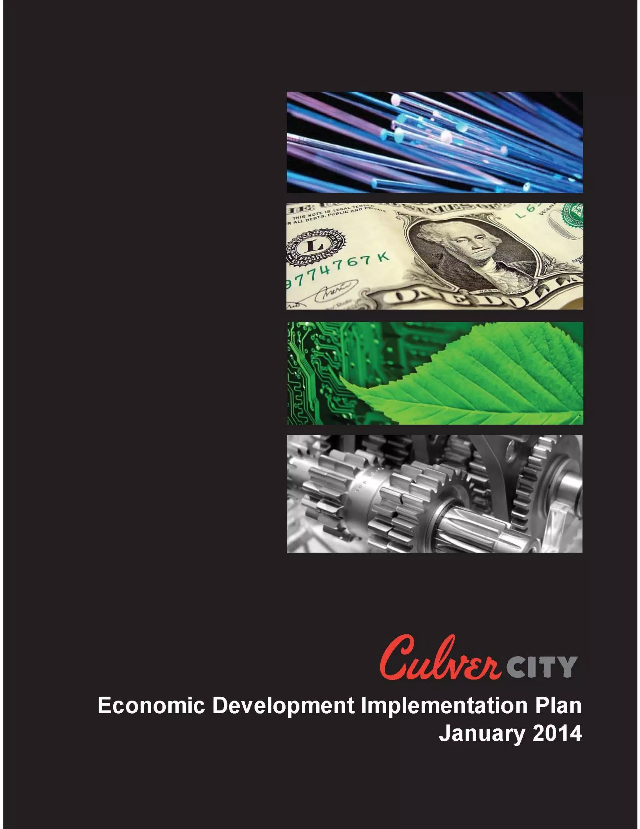 The document provides an overview of an economic development implementation plan for Culver City, California. It includes an economic base analysis identifying key industries and revenue sources. A SWOT analysis identifies strengths such as a strong jobs ratio and educational system, and weaknesses such as limited parking and connectivity. The plan also examines retail leakage and market constraints. It outlines current economic development projects and provides a work plan and timeline to promote business retention, attraction, and growth to ensure the city's financial security.
