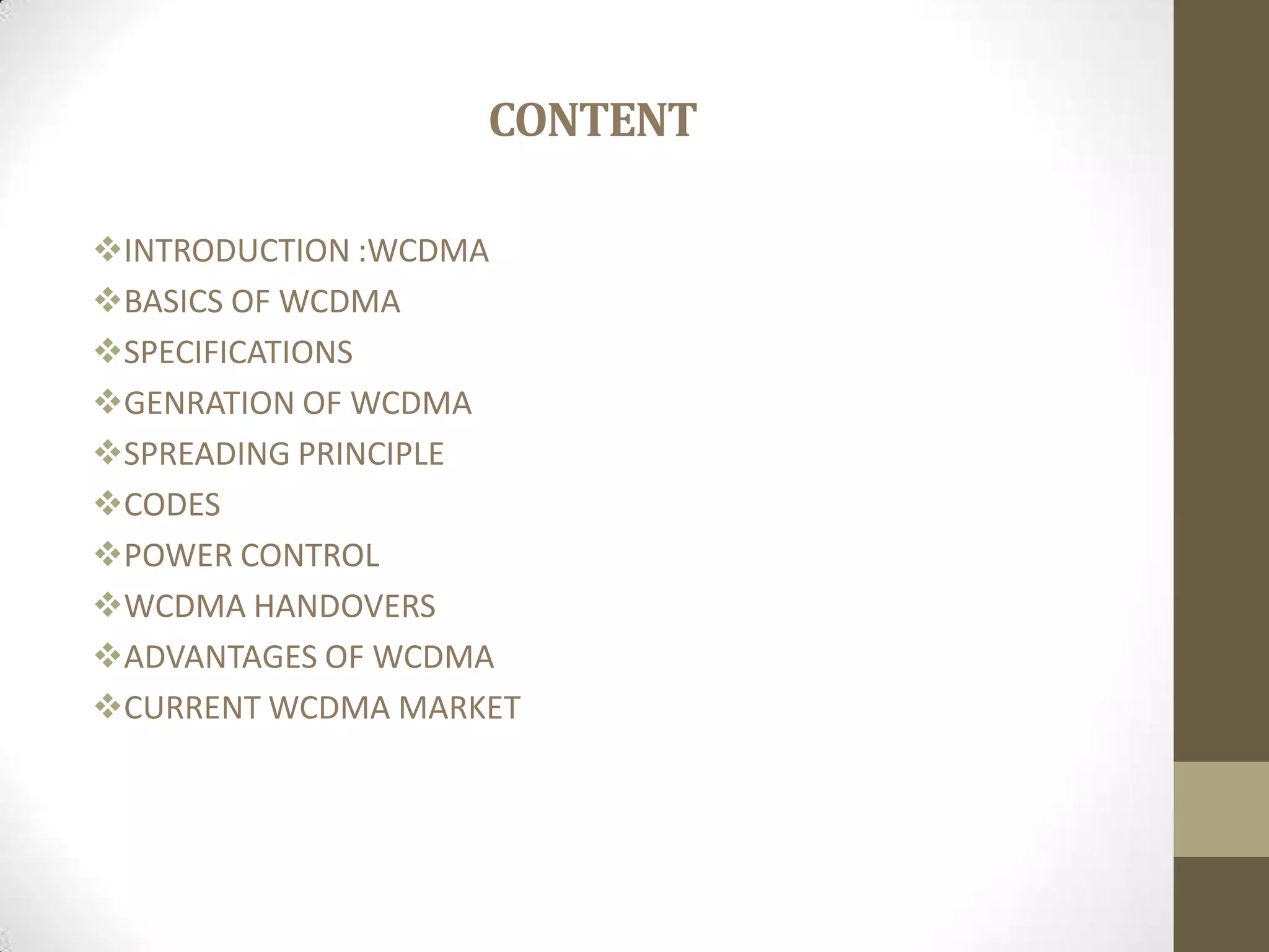 This document provides an overview of Wideband Code Division Multiple Access (WCDMA) technology. It discusses the basics of WCDMA including that it uses direct sequence spread spectrum technology and differentiates users through the use of spreading codes. It also describes key aspects of WCDMA such as power control, handovers between cells, and current market adoption of WCDMA networks. The document aims to inform readers about the specifications and advantages of the 3G wireless standard known as WCDMA.