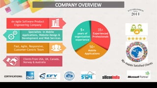 This document summarizes the services provided by Trivialworks, an agile software product engineering company. They specialize in mobile applications, website design and development, and web services. They have over 35 experienced professionals and have developed over 50 mobile applications. Their services include mobile and web application development, quality assurance testing, and graphic design. They follow an agile development approach with sprints for design, development, and testing.