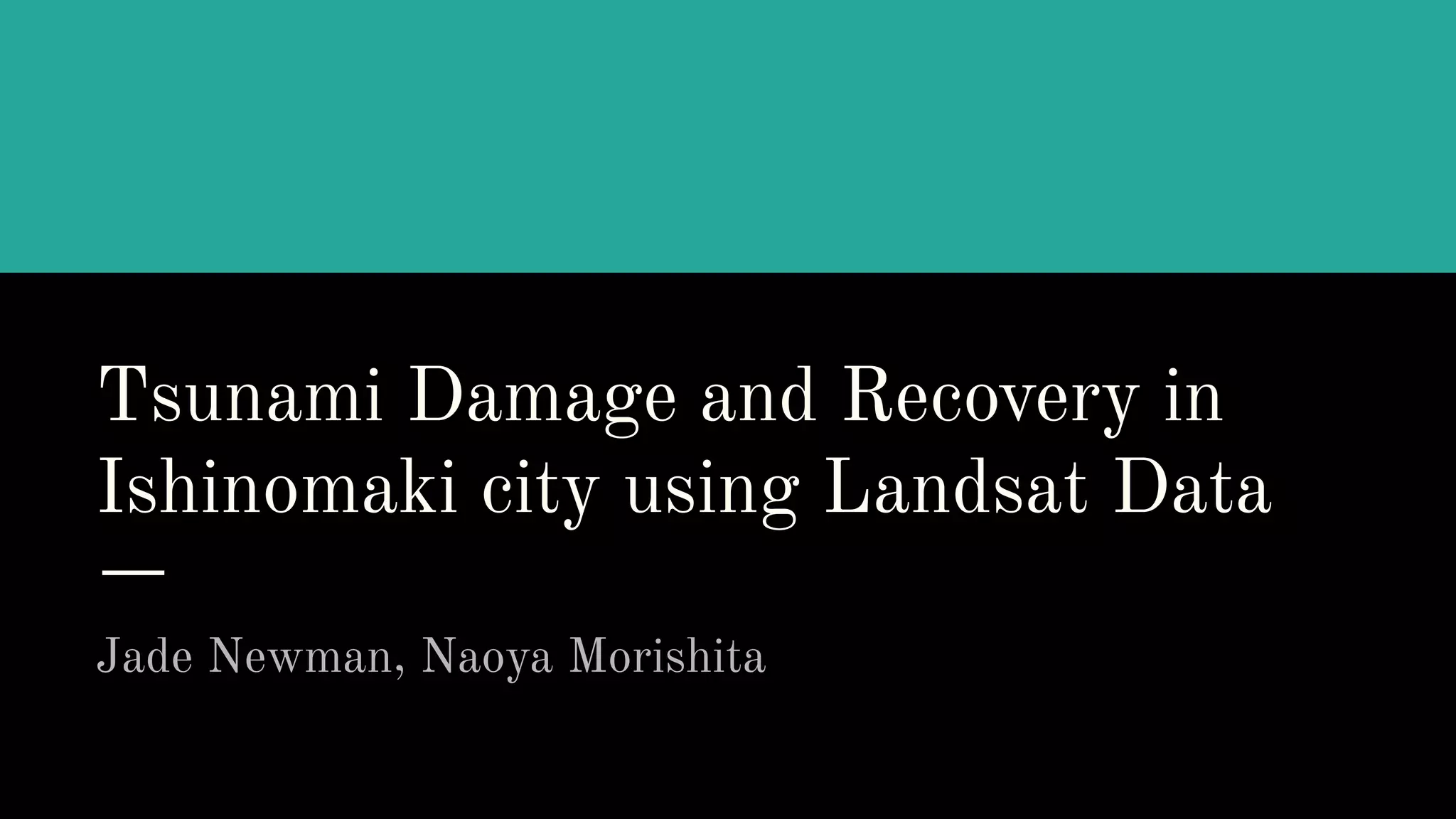 This document summarizes a study analyzing land use changes in Ishinomaki city, Japan following the 2011 tsunami using Landsat satellite imagery from 2009, 2011, and 2022. Supervised classification identified forest, urban, water, and pasture/paddy field areas. Change detection showed urban areas converting to pasture after the tsunami, and more soil detected along the coast in 2011, likely due to tsunami runup. By 2022, the devastated areas showed more red reflectance, possibly indicating re-urbanization. The study demonstrates remote sensing's ability to assess disaster impacts and recovery over time.