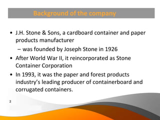 1) J.H. Stone & Sons was founded in 1926 and later became Stone Container Corporation, a leading producer of containerboard and corrugated containers.