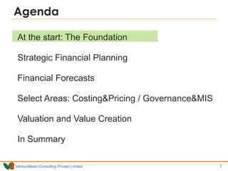 The document outlines essential financial planning strategies for startups, emphasizing the importance of strategic financial planning and forecasting. It highlights the need for entrepreneurs to understand their business model, track finances meticulously, and consider various financial scenarios to ensure sustainability and success. The content also covers aspects of pricing, revenue streams, and the importance of regularly measuring and adjusting financial projections.