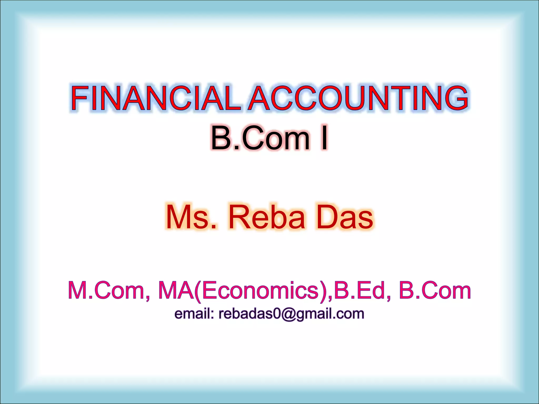 The document provides a comprehensive overview of financial accounting, including its definitions, objectives, and the differences between bookkeeping and accountancy. It also covers various accounting concepts, standards, the accounting cycle, types of accounts, and principles such as depreciation and partnership accounting. Key features such as the final accounts, trial balance, and methods for maintaining capital accounts are discussed in detail.