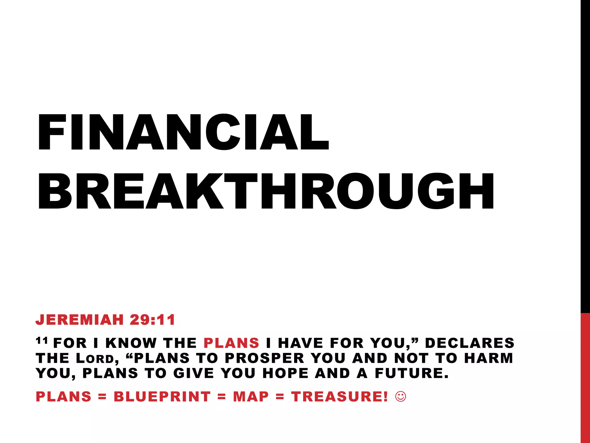This document discusses principles for financial breakthrough based on biblical teachings. It covers three main points: