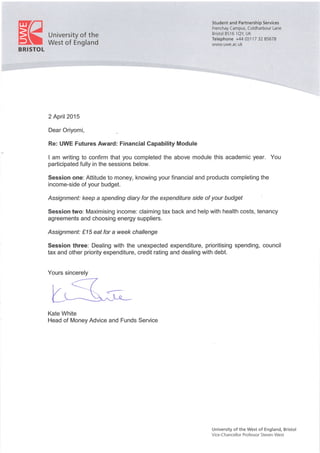 Financial capability module certificate