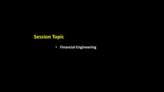 Financial engineering is the application of mathematics, statistics, and computer science to study financial markets and develop innovative financial products. It involves bundling and unbundling securities to maximize profits. Some innovations in India include debt-oriented mutual fund schemes, interest rate futures, interest rate swaps, and floating rate bonds. The process of financial engineering includes identifying client needs, developing product models, testing products, pricing, and launching products. Examples of engineered products are non-voting shares, sweat equity shares, zero-coupon bonds, and dual currency bonds.