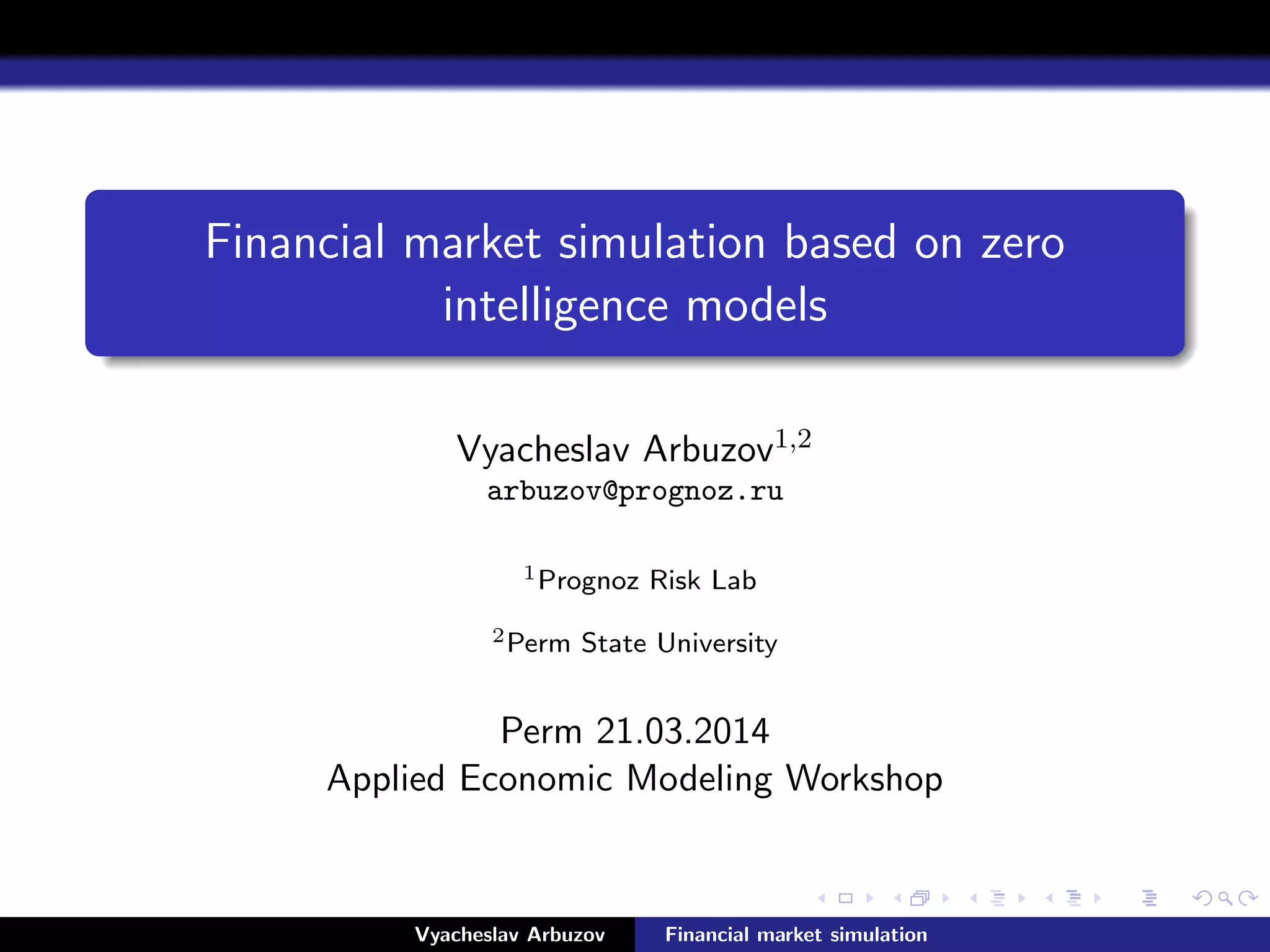 1. The document describes several zero intelligence models for simulating financial markets, including the Daniels model and Mike-Farmer model.