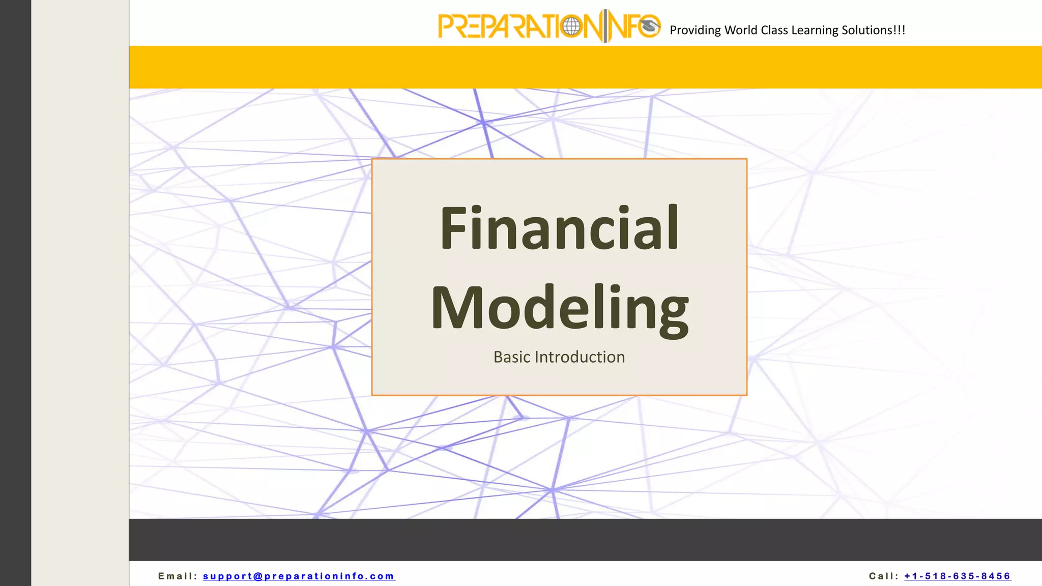 The document provides an overview of financial modeling. It defines a financial model as a tool built in Excel to forecast a company's financial performance into the future, including preparing income statements, balance sheets, and cash flow statements. Financial models are used for decision making, such as capital allocation, budgeting, and valuation. Professionals who build models include those in investment banking, equity research, and accounting. The best way to learn is through practice and training courses. The document outlines best practices for Excel, formatting, model layout, and provides a 10 step guide for building a financial model.