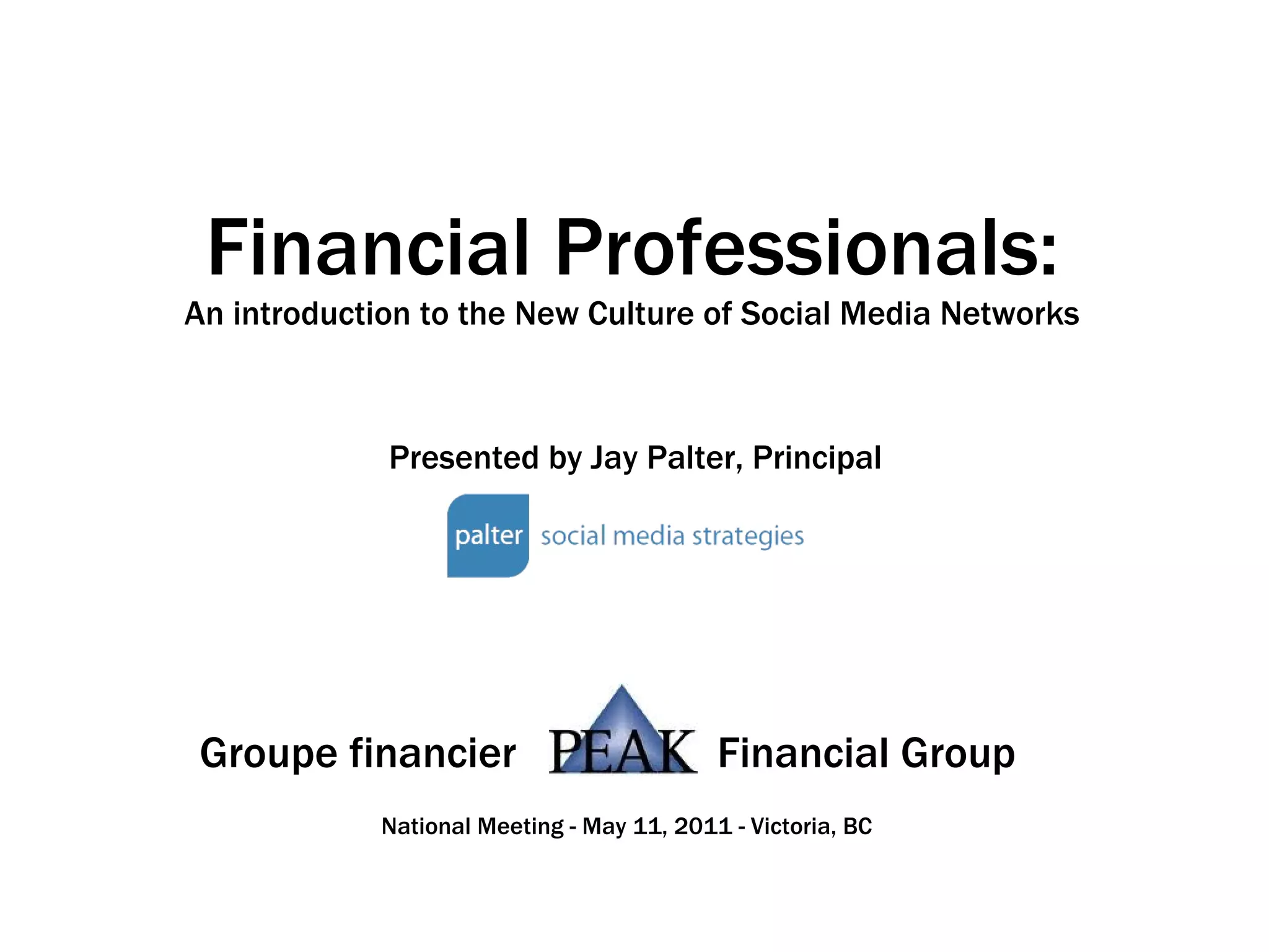 The document discusses the transformative impact of social media on business culture, emphasizing the importance of online presence, credibility, and trust in building relationships. It outlines strategies for effective engagement through various platforms like LinkedIn, Twitter, and Facebook, while presenting ten essential laws of social media marketing to succeed. Additionally, it highlights the shift toward personal branding and the necessity of adapting to the new communication landscape driven by technology and user-generated content.