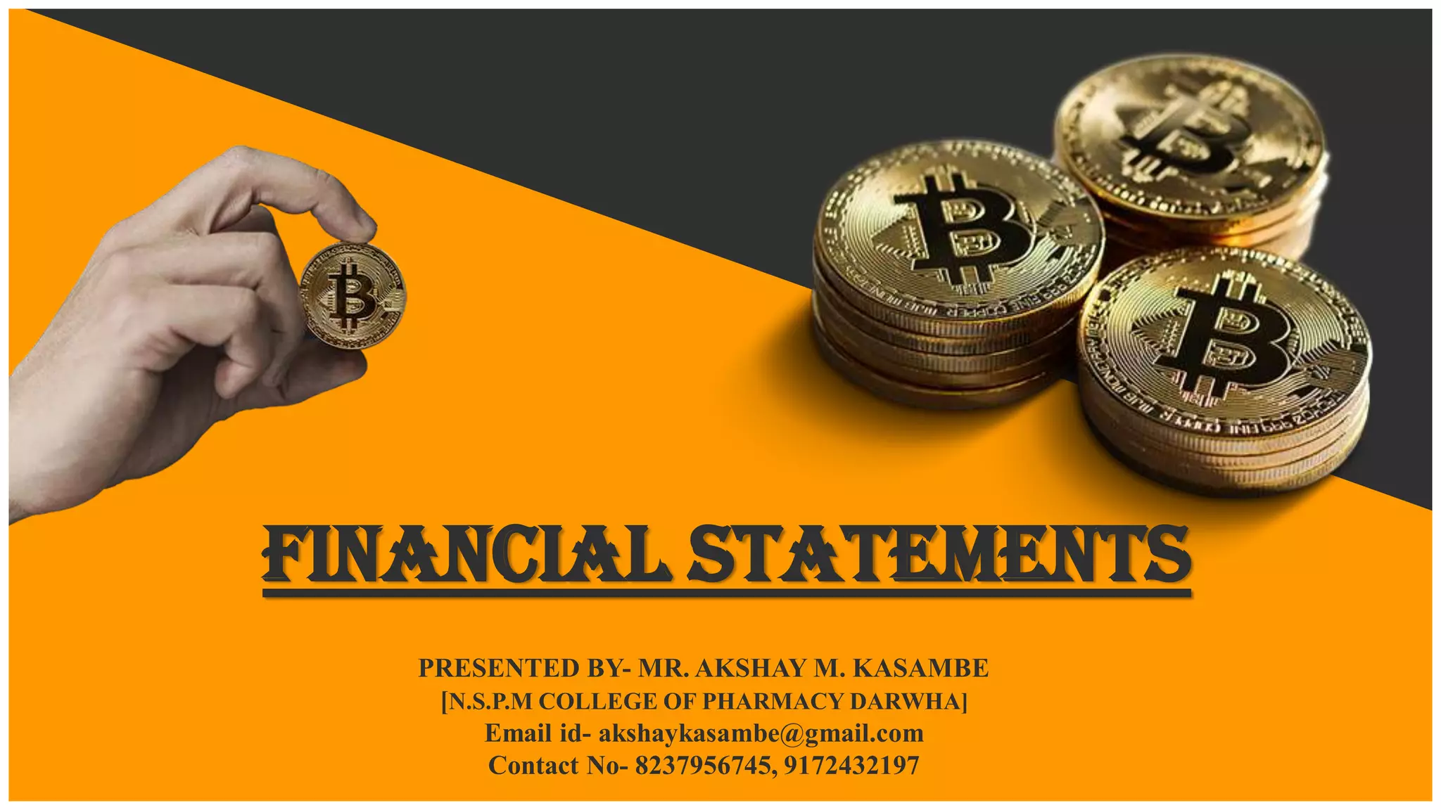 The document provides information about financial statements including profit and loss account and balance sheet. It discusses the preparation, components, and purpose of profit and loss account and balance sheet. Some key points include:
