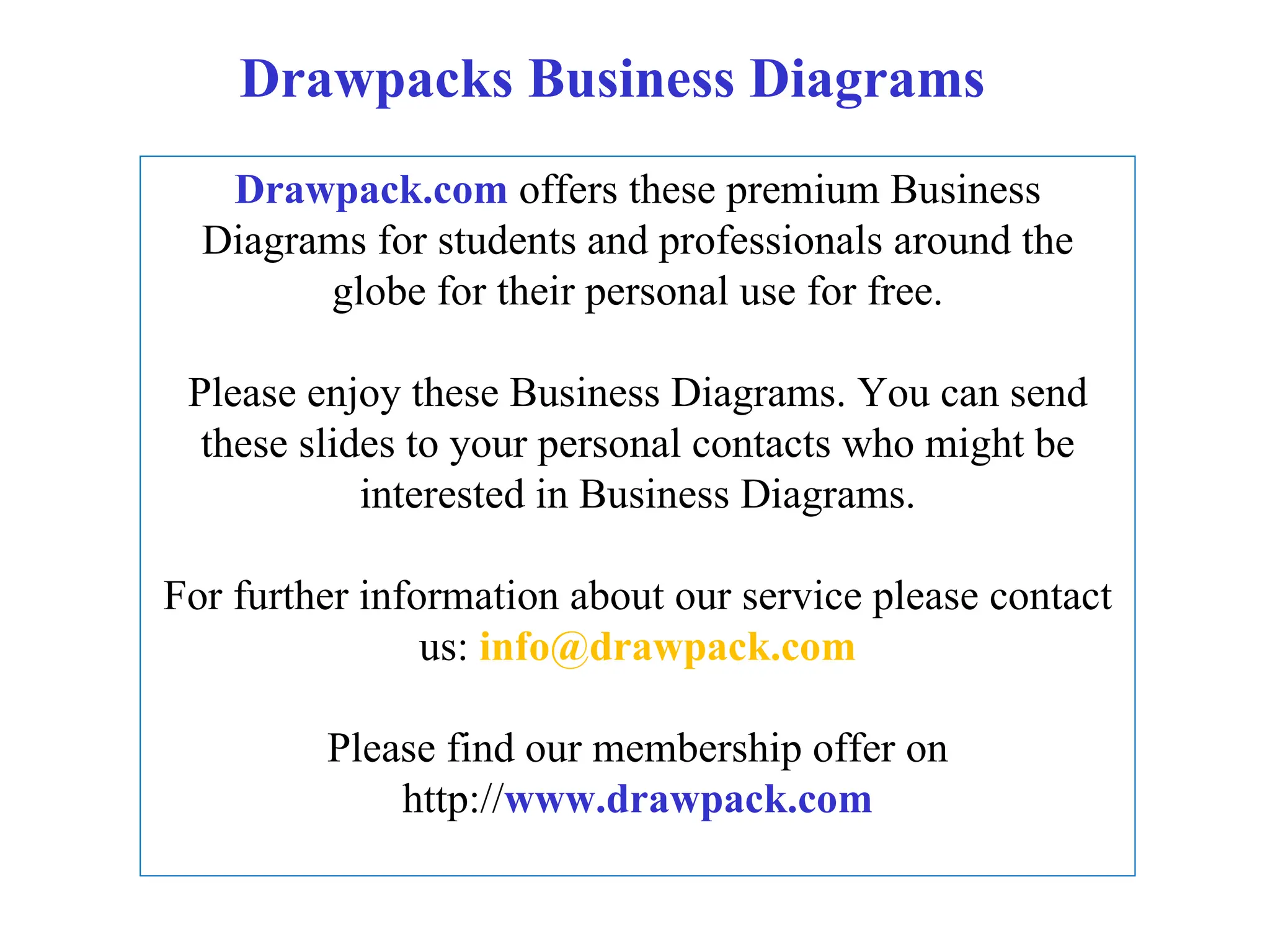 Drawpacks Business DiagramsDrawpack.com offers these premium Business Diagrams for students and professionals around the globe for their personal use for free. Please enjoy these Business Diagrams. You can send these slides to your personal contacts who might be interested in Business Diagrams. For further information about our service please contact us: [email_address] Please find our membership offer on http:// www.drawpack.com