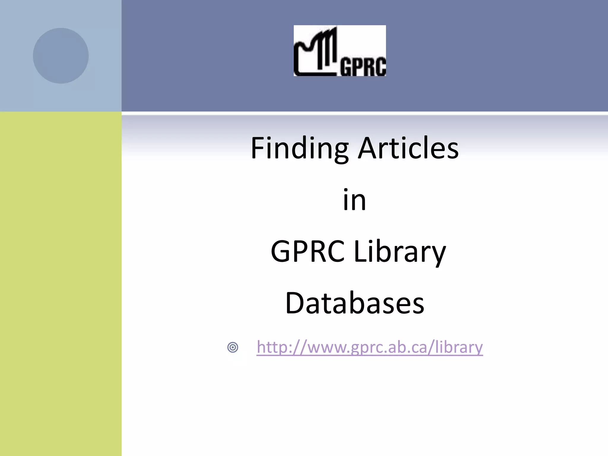 The document provides step-by-step instructions for finding articles in the GPRC Library databases. It describes choosing a subject area and database, entering search terms to find articles, accessing full-text articles, and using interlibrary loan to request articles not available in full-text. An example search on "Facebook and privacy" is used to demonstrate searching, finding full-text and abstract-only articles, and requesting an article through interlibrary loan when it is not available in any of the library's databases.