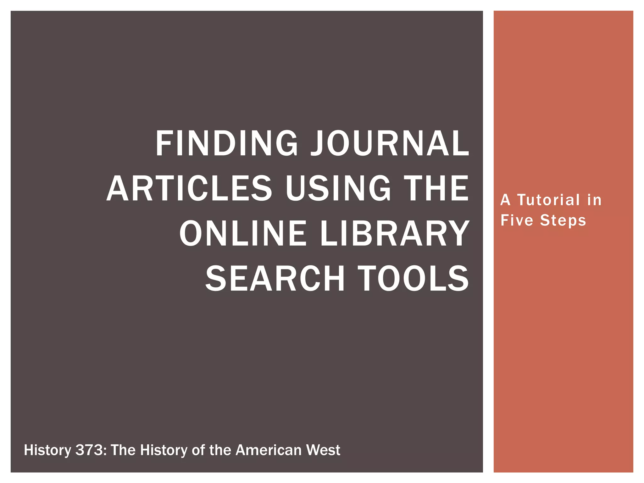 The document is a tutorial outlining five steps to find journal articles using online library tools for a history course. It details how to access the Mirlyn library, locate appropriate databases such as JSTOR, and conduct keyword searches to retrieve articles. Additional tips for effective searching are also provided.