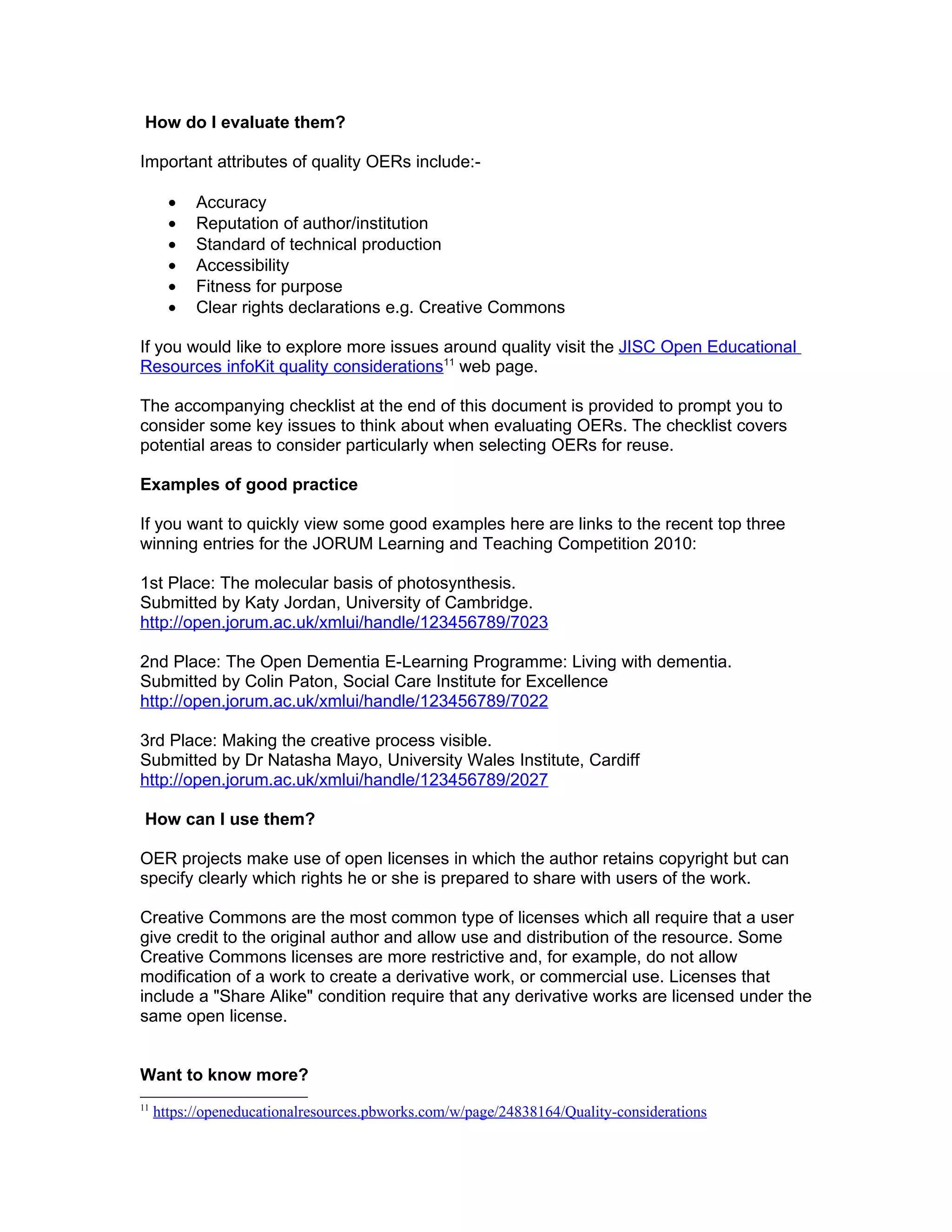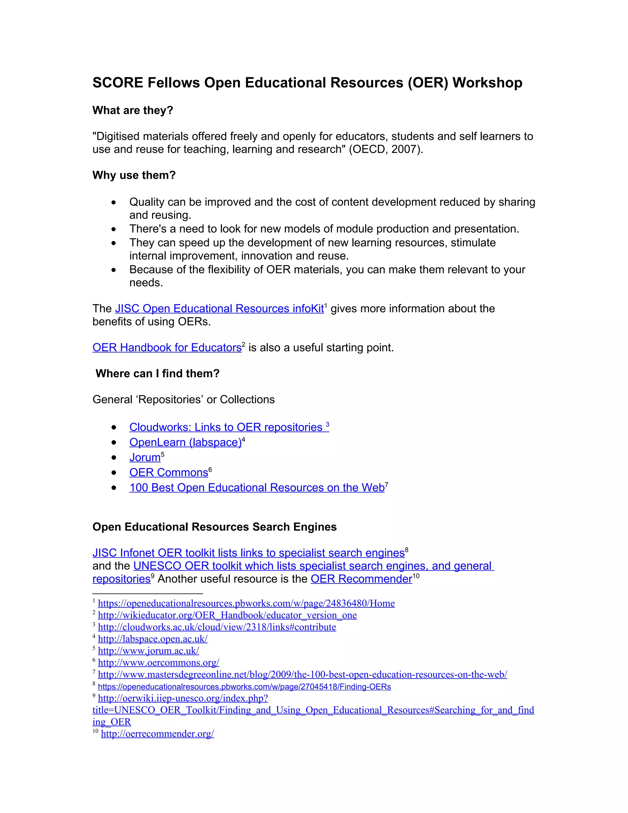 The document discusses Open Educational Resources (OER), which are freely available digital materials for educational use, emphasizing their benefits such as cost reduction and flexibility. It provides resources for finding OER, evaluates their quality using a checklist, and outlines the open licensing methods that allow users to share and adapt the materials. Additionally, best practices and examples of successful OER projects are highlighted to illustrate effective OER implementation in educational settings.