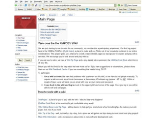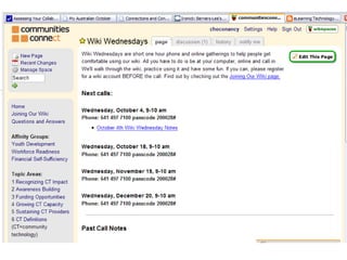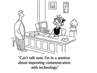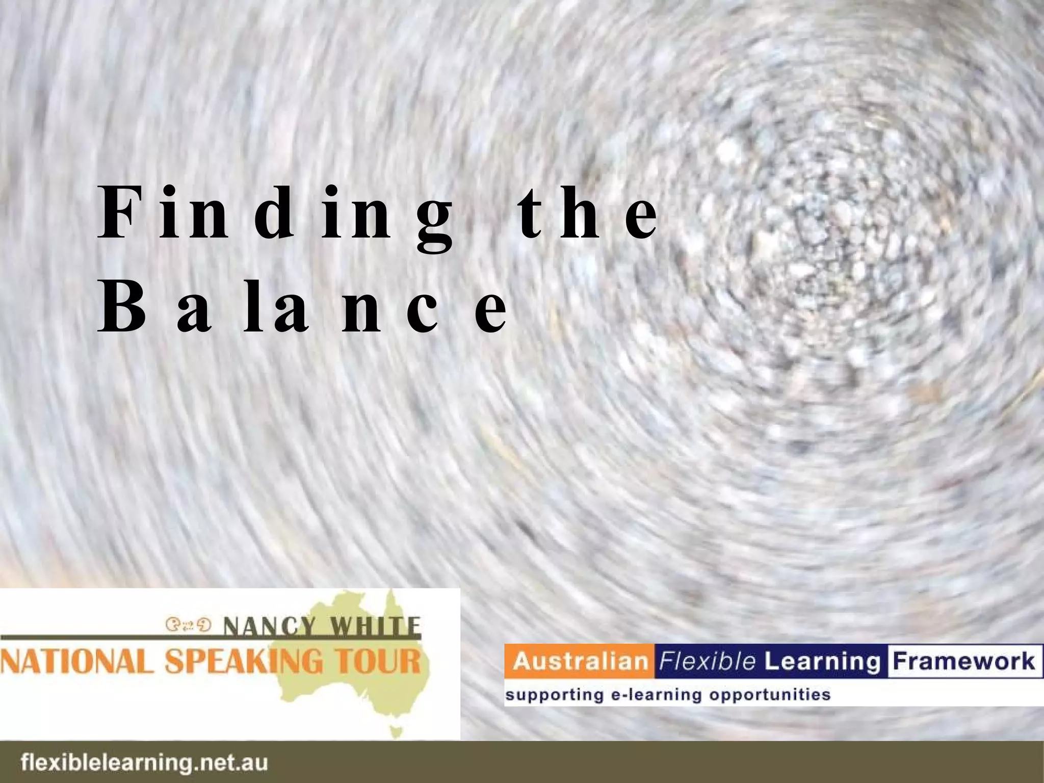 The document discusses balancing individual and group needs in communities through technology. It explores tensions between participation and control, togetherness and separation, and individual vs group aims. It suggests using tools like blogs, wikis and social networks to address these tensions by bringing people closer or creating distance, and facilitating for both individuals and the group overall.