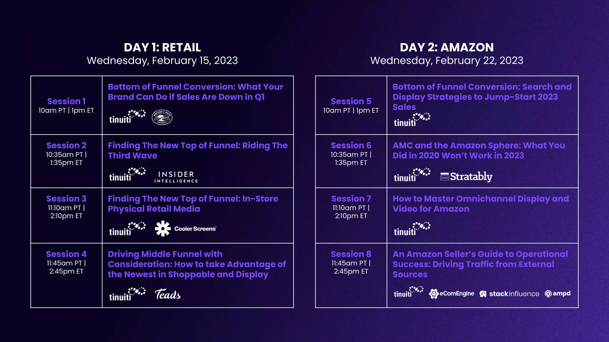 The document outlines sessions from a commerce summit focusing on strategies to enhance retail performance across various funnel stages, particularly as consumer habits shift towards digital. It emphasizes the continued importance of in-store experiences while integrating digital solutions to elevate customer engagement and drive sales. Key takeaways highlight the need for brands to adapt their strategies by leveraging data-driven in-store activations and recognizing the evolving landscape of retail marketing.