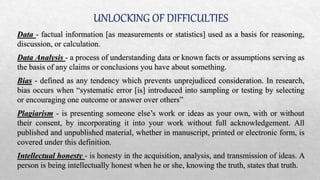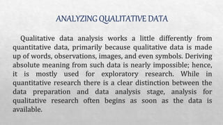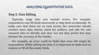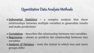The document discusses proper and wrong practices in research methods. It covers topics like plagiarism, bias, intellectual property rights, logical fallacies, impartiality, citation, transparency, and dishonest reporting. Researchers should identify an analysis method appropriate to their study and understand the differences and similarities between qualitative and quantitative data analysis. The document also includes an analysis of a survey that identified favorable and unfavorable teacher attitudes perceived by students.
