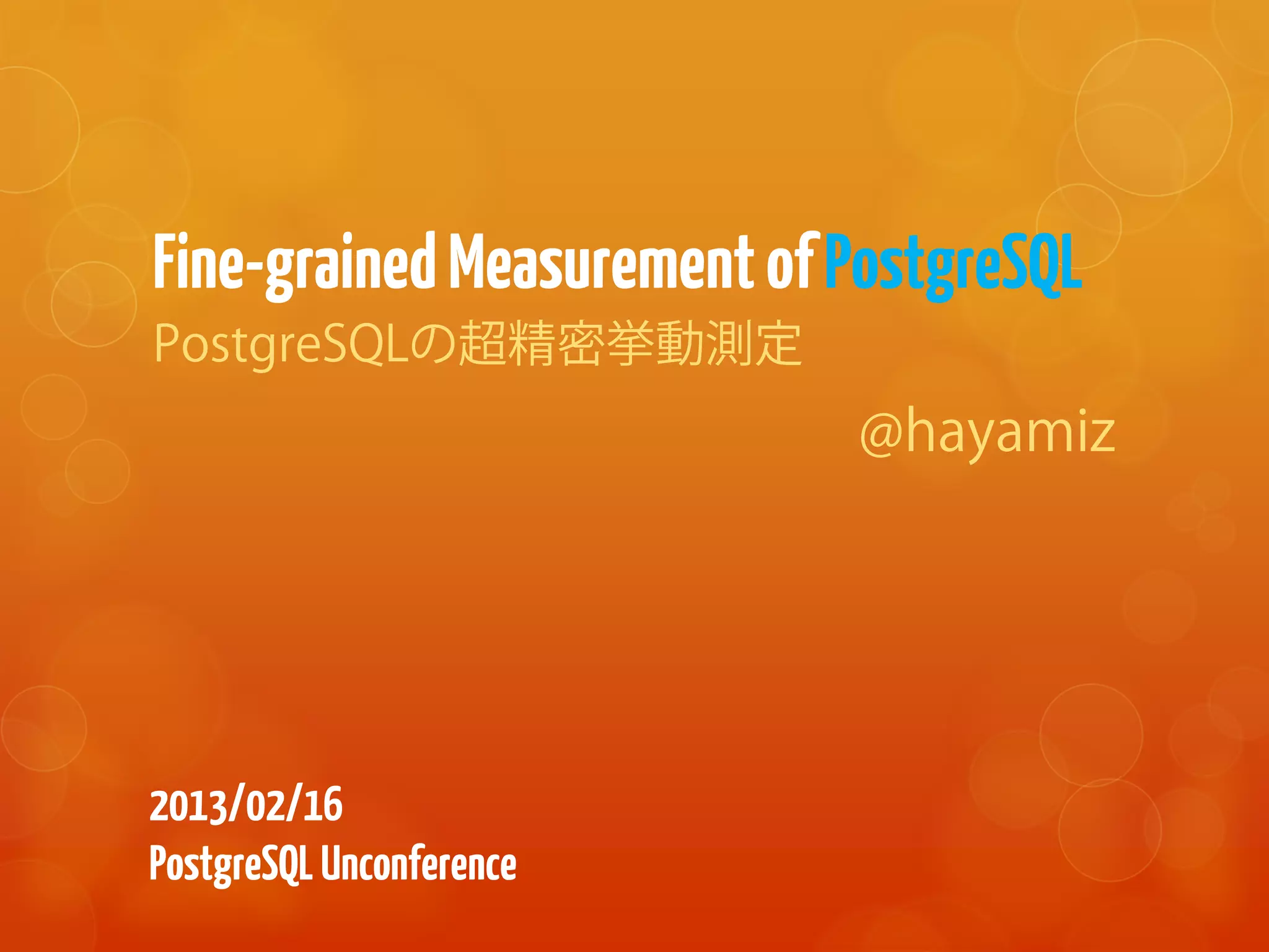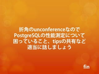 This document discusses fine-grained measurement of PostgreSQL performance at the 2013 PostgreSQL Unconference. It describes using the pg_stat_statements module to collect data on SQL statement execution times, counts, and other metrics. This allows identifying slow queries and analyzing where performance optimizations may be possible.