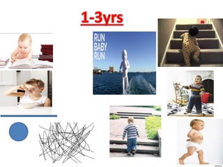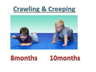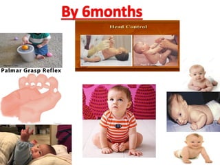 The document outlines the developmental milestones in infants related to grasping and motor skills from birth to 2 years. Key milestones include the transition from involuntary to voluntary grasp reflexes, the development of different types of grasps, and stability in sitting and standing positions. It also details associated age ranges for skills such as using utensils and building with cubes.