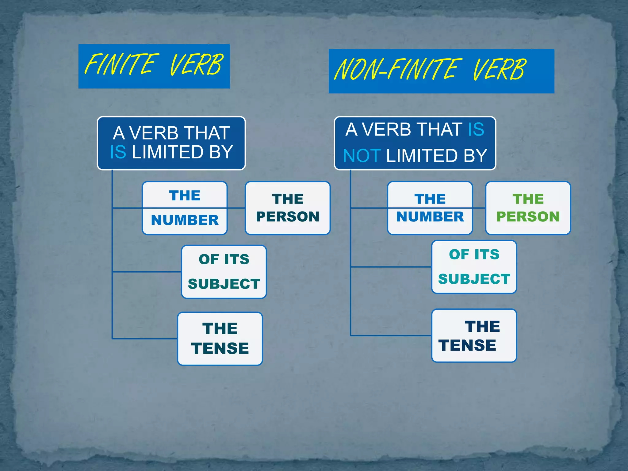 This document defines and provides examples of finite and non-finite verbs. Finite verbs are limited by the number, person, and tense of the subject. Non-finite verbs are not limited in this way. There are three types of non-finite verbs: the infinitive, which is usually preceded by "to" and acts like a noun, adjective, or adverb; the present and past participles, which act like adjectives; and the gerund, which ends in "ing" and acts like a noun. Examples of each non-finite verb form are given.