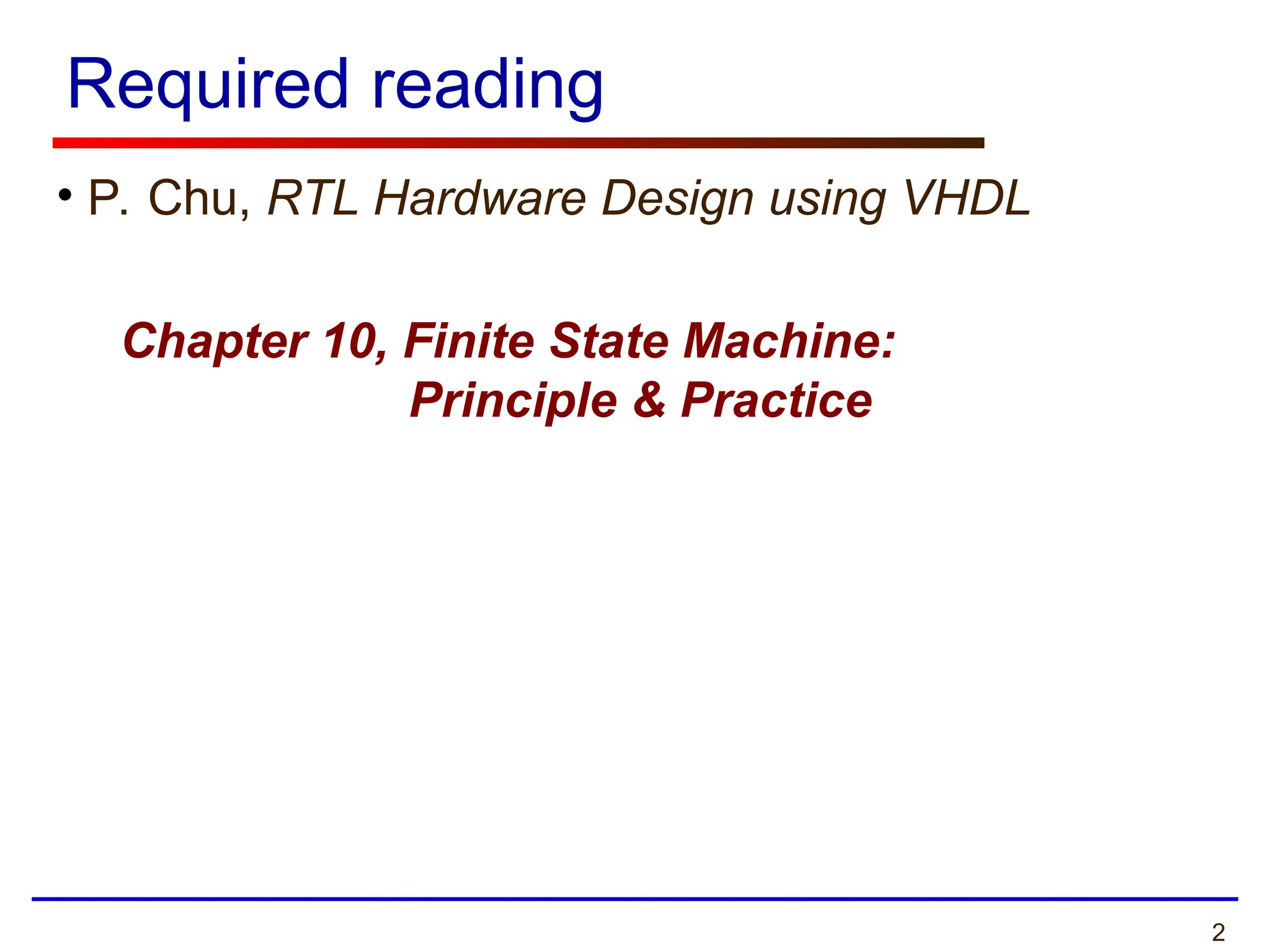 • P.Chu, RTL Hardware Design using VHDL