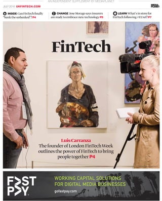 The document discusses how FinTech (financial technology) is failing to connect with its key constituency of 18-35 year olds, known as Millennials. A recent poll showed that 92% of Millennials have never heard of FinTech, despite being interested in the types of financial services that FinTech companies provide. The document explores some of the reasons for this disconnect and discusses ways that FinTech companies can better promote their services and connect with consumers outside of the "FinTech ecosystem".