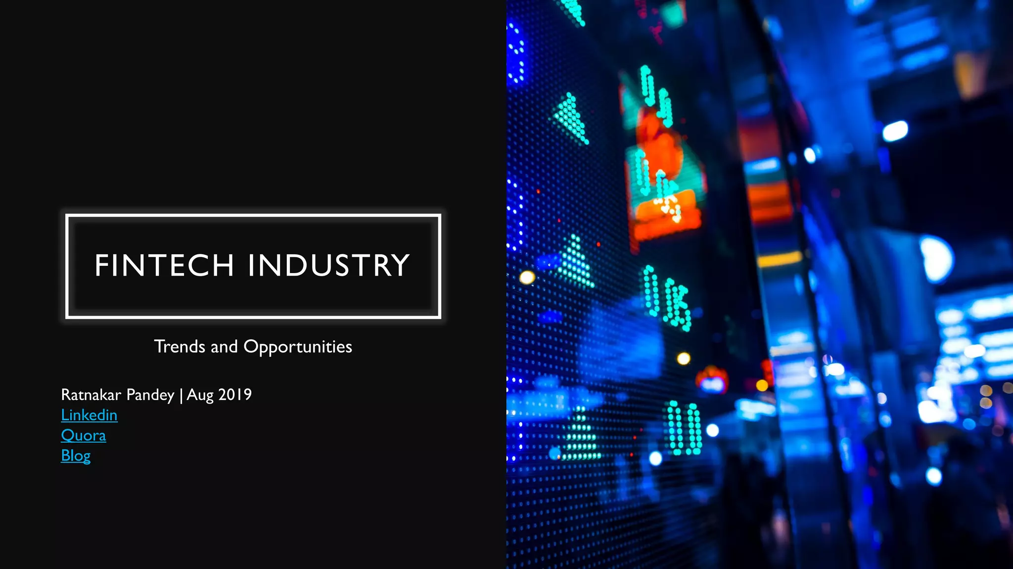 The document discusses trends and opportunities in the FinTech industry. It notes that FinTech companies leverage technology to drive improvements in financial services and there are thousands globally. FinTech covers areas like payments, wealth management, insurance, and lending. Factors driving FinTech growth include a focus on customer experience through technology and data, financial inclusion, collaboration over competition, consumer adoption of technology, and government support through digitization and regulations. BigTech companies are also entering the FinTech space through offerings like lending, payments, and insurance.