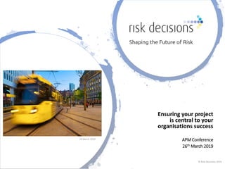 This document contains excerpts from a conference on embracing risk and ensuring projects are central to organizational success. It includes quotes about taking risks and rewards, a new type of risk-intelligent leader, and helping visionary leaders embrace risk. The document promotes the services of Risk Decisions in helping organizations shape positive risk visions and strategies through masterclasses, collaborative frameworks, and building sustainable risk capabilities.