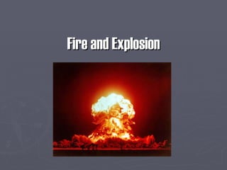 The document discusses fire and explosions in occupational health and safety. It outlines several key points: