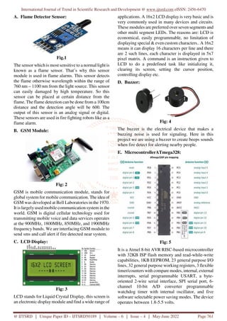 The document discusses the design and implementation of a cost-effective and reliable GSM-based fire alarm system aimed at preventing fire accidents, which can cause significant loss to life and property. The system utilizes an Arduino Uno microcontroller integrated with a flame sensor, GSM module, LCD display, and a buzzer to provide alerts through SMS and audio signals when fire is detected. This automated approach is intended to ensure timely notification to occupants and enhance safety in both residential and industrial settings.
