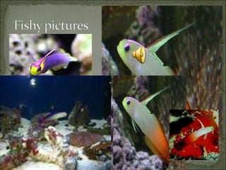 Firefish, scientifically known as Nemateleotris, live near coral reefs and eat zooplankton and larvae. There are three types of firefish - elegant, purple, and pumpkin. Their prey is zooplankton while their predator is the lionfish.