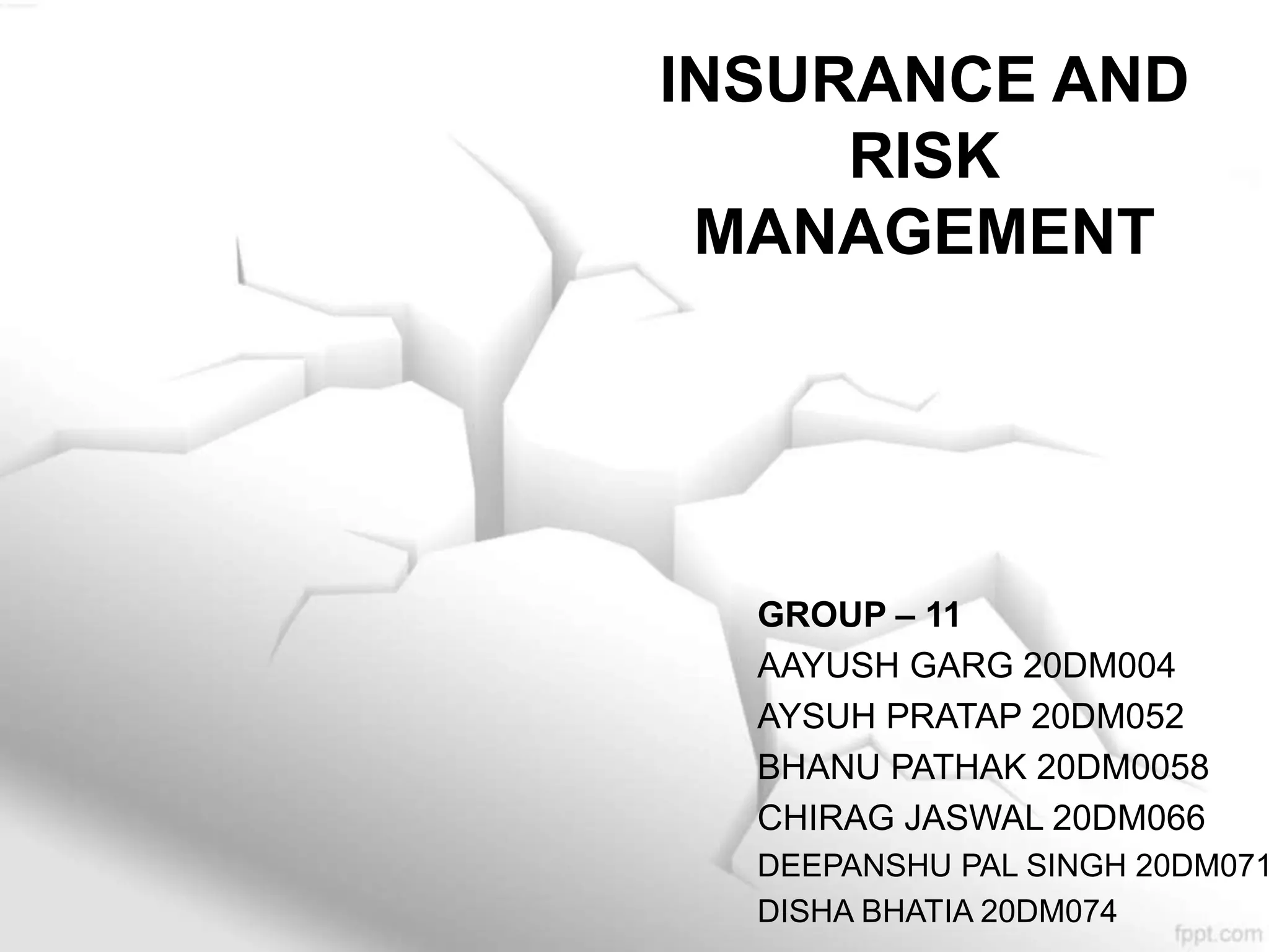 The document discusses earthquakes, fire insurance, and components that are and are not covered under standard fire insurance policies. It defines an earthquake and fire insurance. Components normally not covered include damage from nuclear perils, electrical equipment issues, terrorism, war, and natural disasters like earthquakes. However, with an additional premium, add-on coverage can be purchased for events like earthquakes, wreckage removal, and damage from temperature changes.