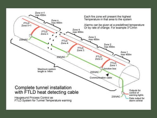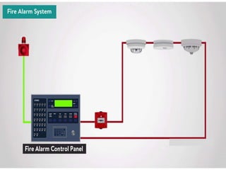 This document discusses automatic fire detection systems and different types of fire detectors. It describes how fire alarms are used to protect life and property by alerting people to emergencies. Various detectors are discussed that can detect smoke, heat, radiation or flames using different operating principles like fixed temperature, rate of rise, ionization, optical scattering, sampling or multi-criteria. Examples of applications and limitations of different detector types are provided.