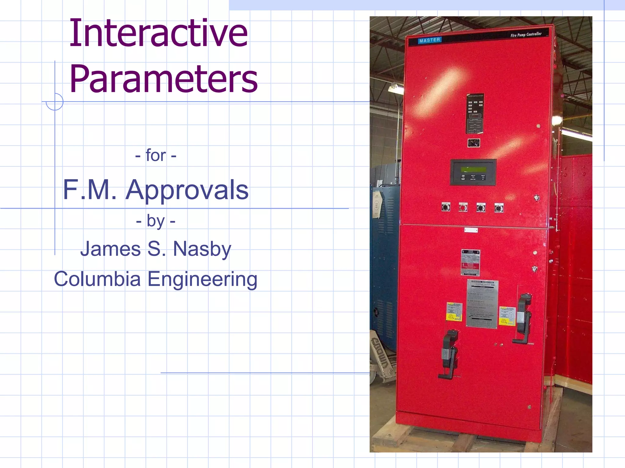 The document discusses various interactive parameters and interdependencies related to fire pump controllers. It covers topics like transient energy handling, control circuitry reliability, data recording considerations, enclosure types, single phase protection, environmental conditions, pressure coordination, and redundant pump interlocking. Redundant pump operation is addressed, noting the conditions under which the secondary pump would start and lockout the primary.