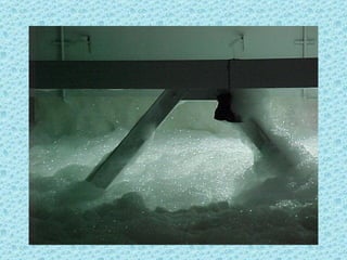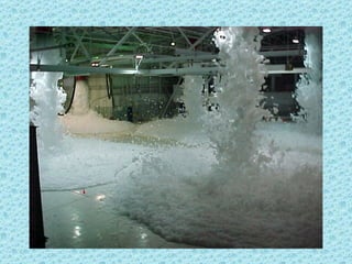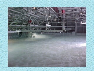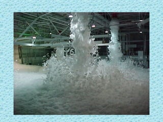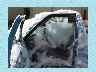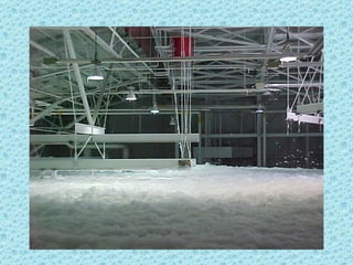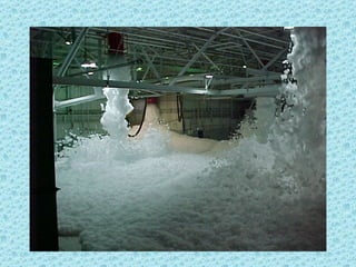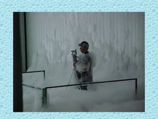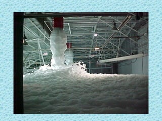 The foam test system at Ellsworth Air Force Base malfunctioned and wouldn't shut off as intended, spraying foam all over the area for an extended period. Photos show firefighters struggling to contain the foam spraying from drains, and a vehicle parked with windows open that became filled with foam due to an oversight.