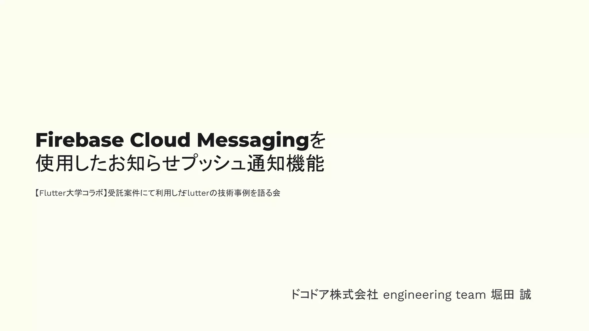 【Flutter大学コラボ】受託案件にて利用した Flutterの技術事例を語る会 Firebase Cloud Messagingを 使用したお知らせプッシュ通知機能 ※このページは削除して構いません USE