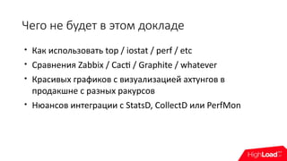 Доклад посвящен механизмам мониторинга баз данных с акцентом на необходимость понимания информации, необходимой для администраторов и DevOps. Обсуждаются методы сбора и анализа метрик, включая снэпшоты и логирование в разных системах управления базами данных, таких как MySQL, PostgreSQL и Firebird. Особое внимание уделяется детализации метрик, доступности и целостности данных, а также рекомендациям по оптимизации мониторинга.