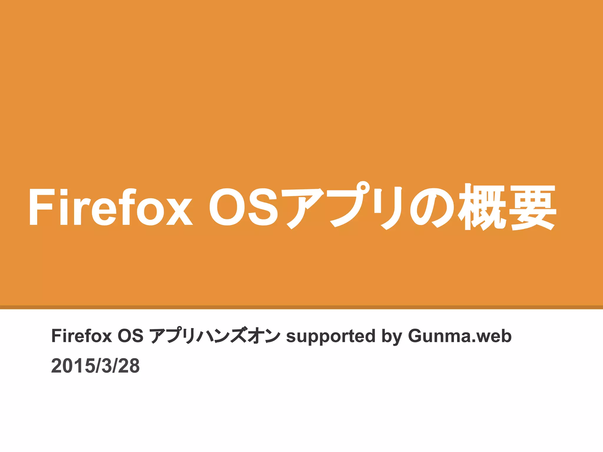 Firefox OSアプリの概要@gunma.web 2015/3/28 https://gunmaweb.doorkeeper.jp/events/21025