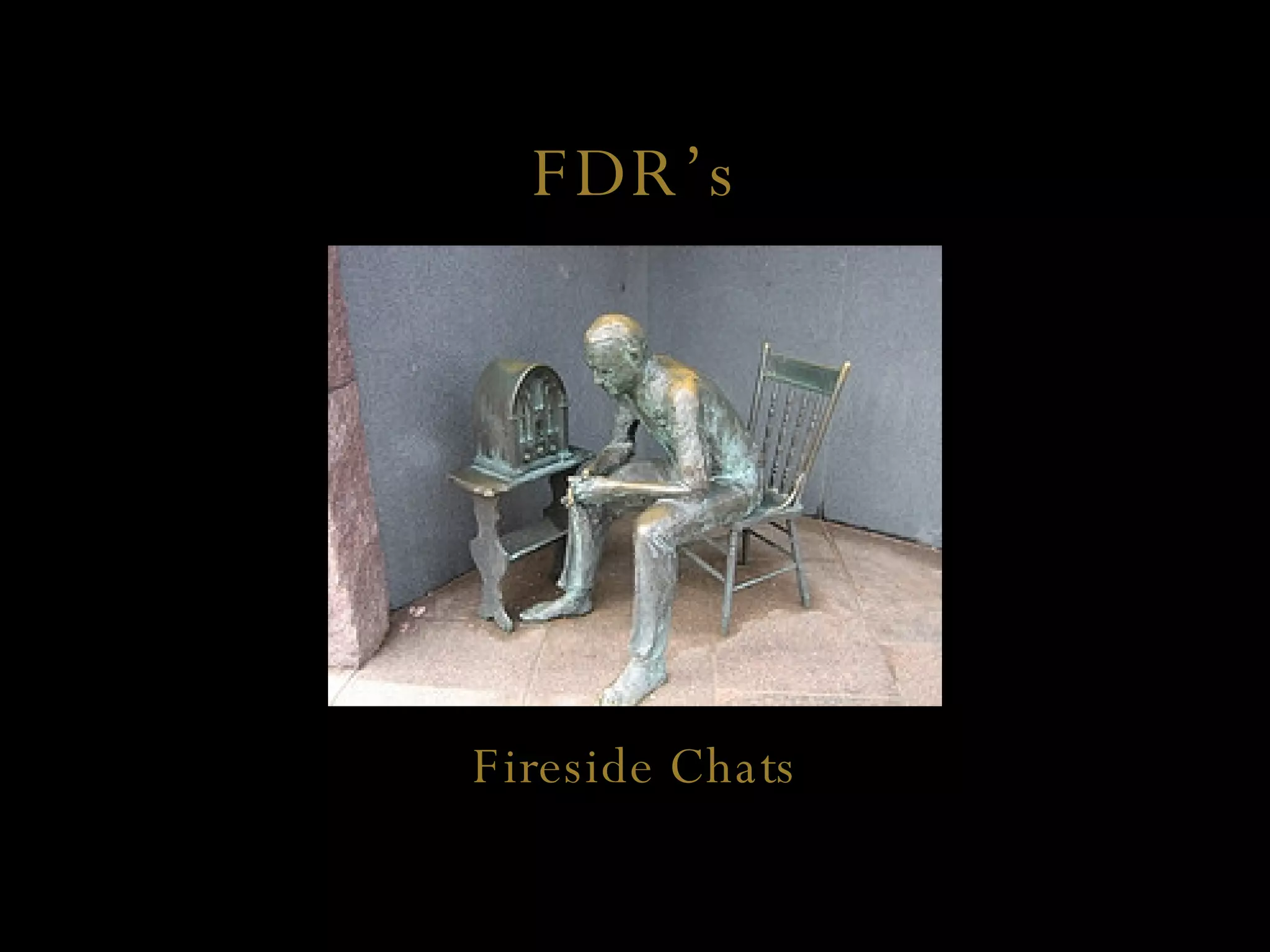 FDR's Fireside Chats allowed him to directly communicate with the American people during the Great Depression when radio was the primary form of mass communication. Through a series of radio addresses between 1933-1944, President Roosevelt sought to explain his New Deal policies and calm fears about the banking crisis. Families would gather around their radios to listen to the president speak, creating a national dialogue between FDR and the public about addressing the challenges of the economic crisis.