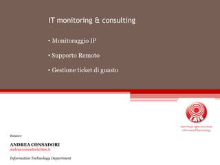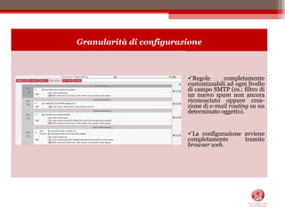 Il documento tratta dei sistemi di sicurezza informatica, evidenziando che molti firewall sono mal configurati, riducendo la loro efficacia. Lais S.r.l. offre formazione e supporto tecnico post-installazione, garantendo la protezione dei dati e delle reti aziendali. Il sistema di monitoraggio IT proposto è personalizzabile, supporta una gestione centralizzata e fornisce analisi dettagliate delle vulnerabilità e delle performance di rete.