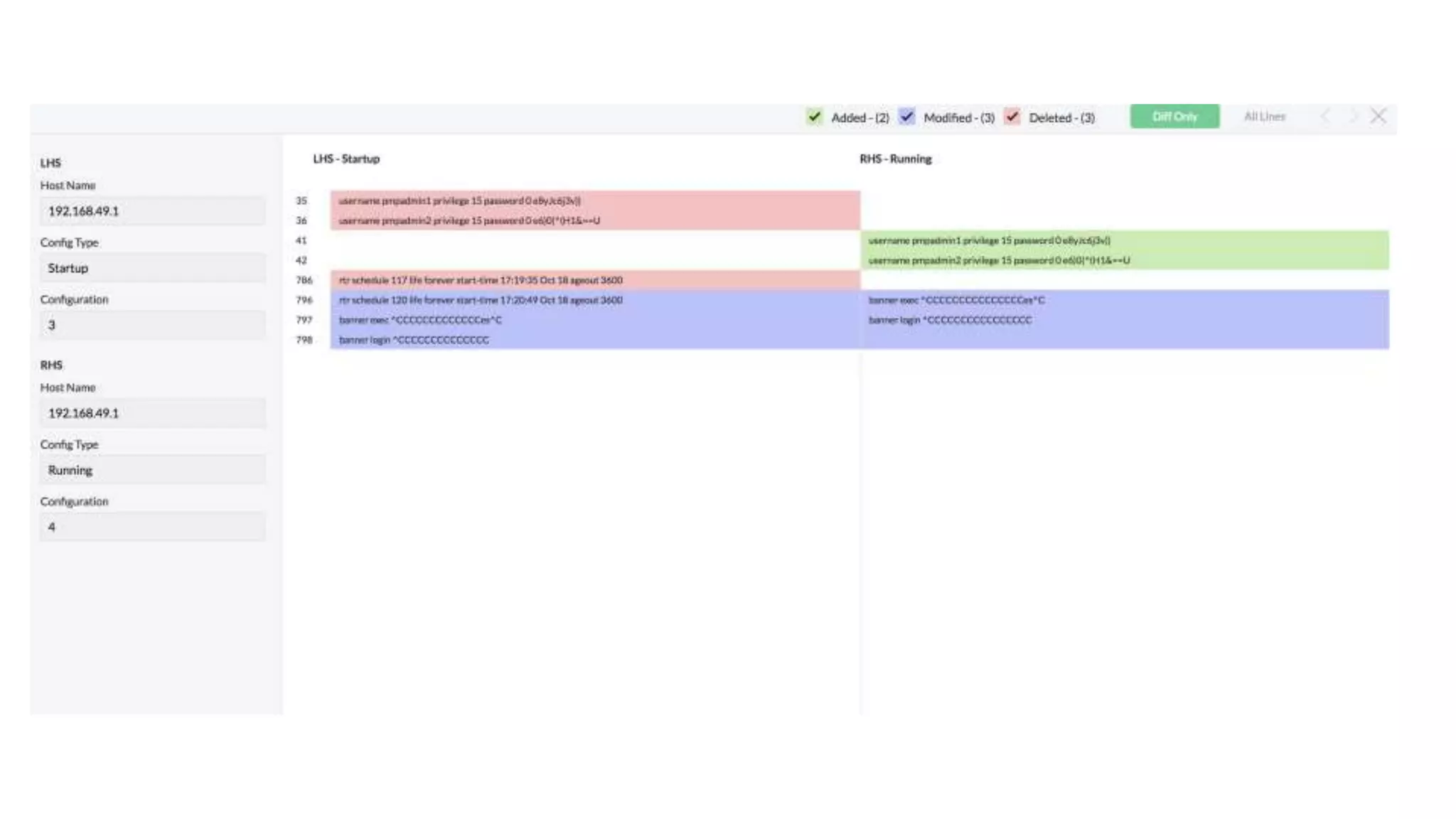 > The changes in configurations like Modified, Added and Deleted are