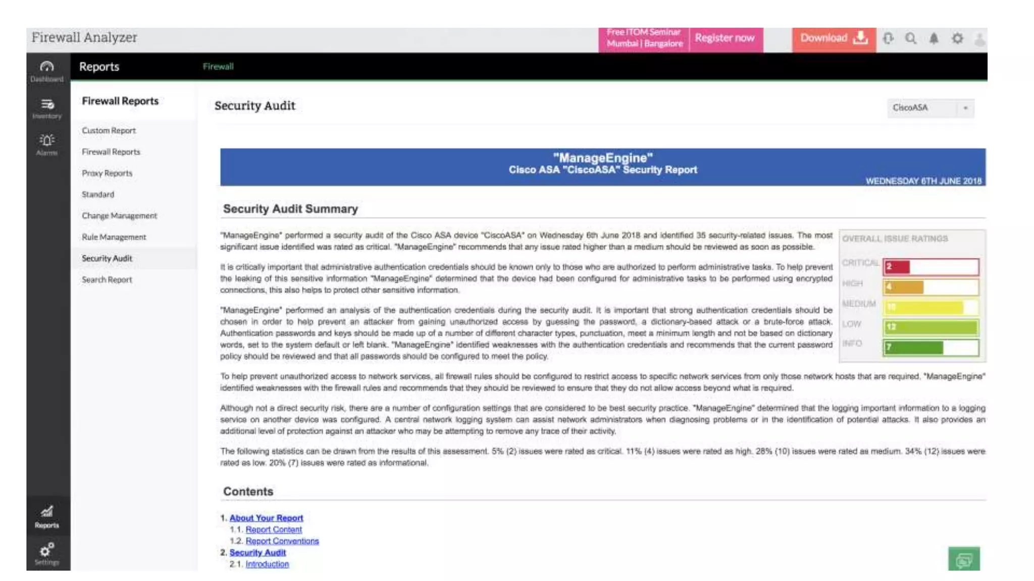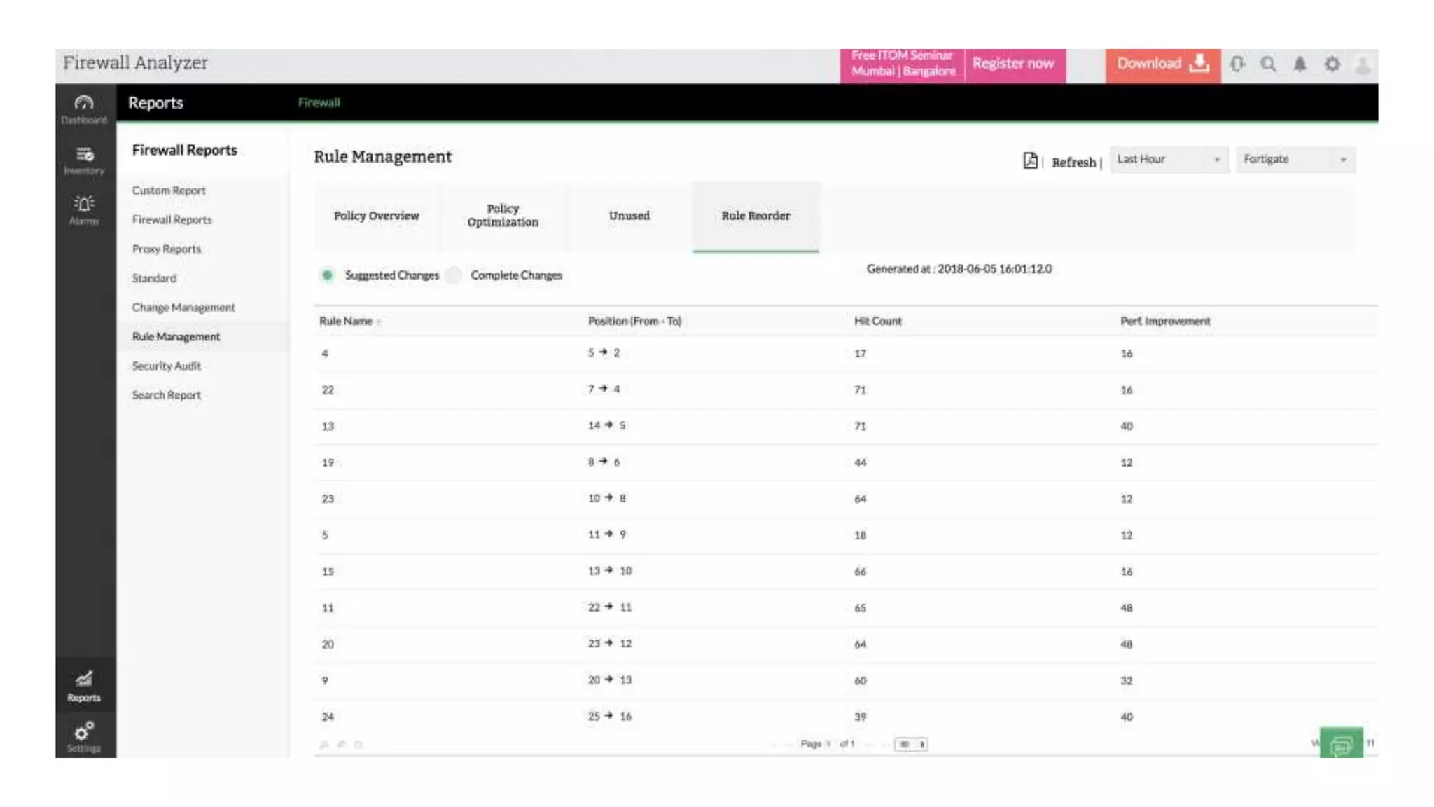 compliance report for firewall configuration creates an immediate ROI for customers to present back to their
